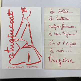 Lucie Porges was Pauline’s most important associate and closest collaborator starting from when she was hired in 1951 until the firm closed in 1993. An interview written by former Vogue Editor-at-Large Mr.Andre Leon Tally stated that Lucie was "The Second Trigère at Trigère." During an interview it was described when Lucie was pregnant with her first child: Claudia, Pauline jokingly stated she wanted have Lucie deliver her baby on the sample room cutting table; since Lucie was was her second in command. In fact, Lucie went back to work two weeks after delivering her first daughter. Lucie was an invaluable collaborator throughout the Trigère business. On my research trip at Parson’s School of Design, I uncovered hundreds of sketches and Trigère fashion show catalogs drawn by Lucie Porges.